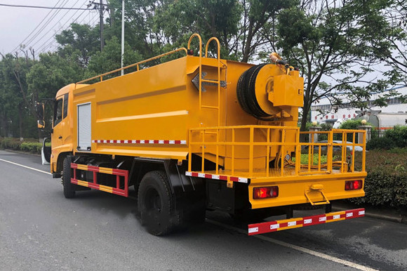 配有高壓水泵的水罐車,清洗城市下水道的沉積物,疏通下水道。也可用于清洗工業(yè)排液管道、壁面等,并可兼作灑水、運水和沖洗公路用,緊急時可用于救火。