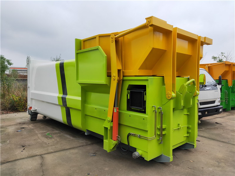 勾臂垃圾車【車廂可卸式垃圾車】車體和垃圾箱可完全分離,由液壓系統(tǒng)來完成收箱/放箱,在平日里可將車載垃圾箱放置到各個垃圾收集點,待垃圾收集滿后,該車可直接開赴收集點,通過液壓系統(tǒng)的操控,可將垃圾車后座上加裝的勾臂放下,掛住站內(nèi)箱體前端的連接點,將垃圾箱拉**車體的后座上,此時即可開動車輛,將垃圾運送垃圾處理站內(nèi),進行自卸式傾倒,優(yōu)點就是可一車配多斗,一輛車就可以維持數(shù)個垃圾收集站的運轉(zhuǎn),效率高,且箱體為密封式設(shè)計,不會造成二次污染。