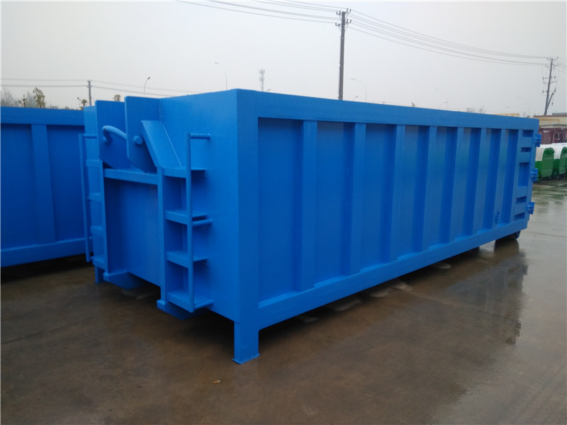 勾臂垃圾車配套移動垃圾箱外形以上梯形下長方形、上弧形下長方形、上弧形下弧形、長方形為主,箱體兩邊各帶一對或二對垃圾投入口或頂部開口,帶蓋式箱體能夠避免風將輕質(zhì)垃圾(塑料袋,廢紙等)吹散和防止雨水進入箱內(nèi);箱體底部帶一對鐵輪方便吊上卸下時垃圾箱的移動,箱體后部可開啟【帶鎖緊機構(gòu),配備密封條】。勾臂垃圾箱外觀形狀、大小容積可根據(jù)用戶需求定制加工。