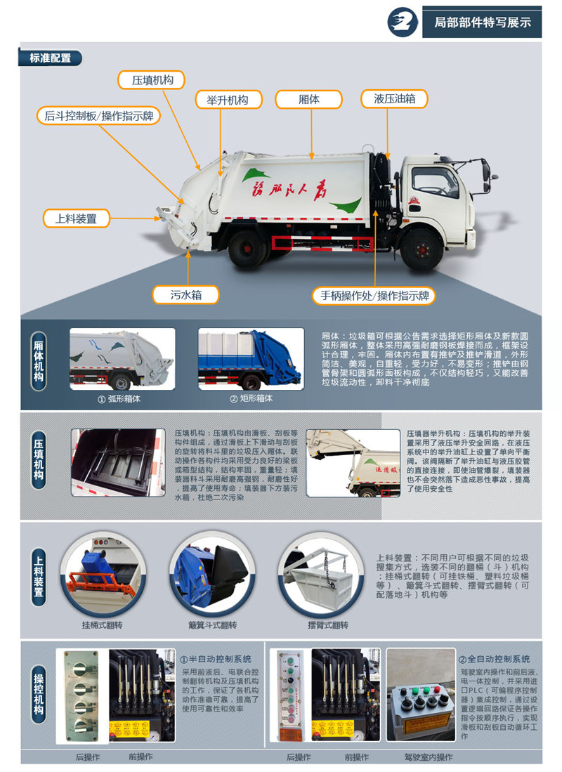 5、雙向壓縮、提高了廂體裝載量,填充器雙向保護(hù)閥、保證填充器平穩(wěn)下降、即使油管爆裂、填充器也不會(huì)突然落下,提高了使用安全性。