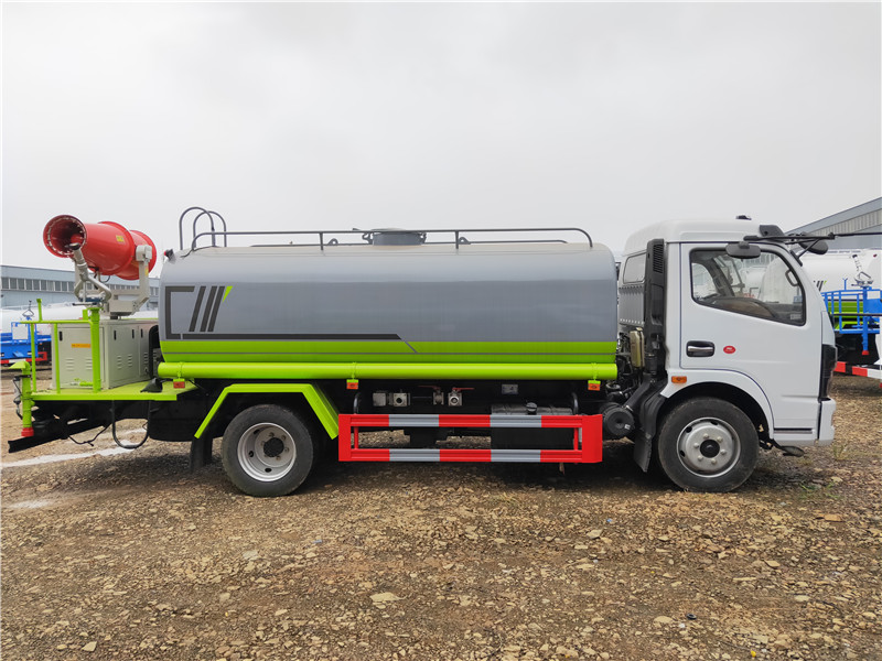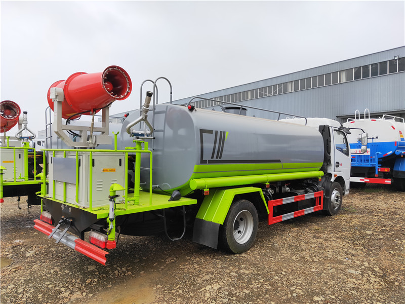 灑水車工作主要由發(fā)動(dòng)機(jī)帶動(dòng)變速箱,變速箱上安裝的取力器帶動(dòng)灑水車水泵產(chǎn)生動(dòng)力,將罐體內(nèi)部的水通過(guò)管路噴灑出去,水泵可自吸自排。可根據(jù)用戶需求選配抑塵霧炮。